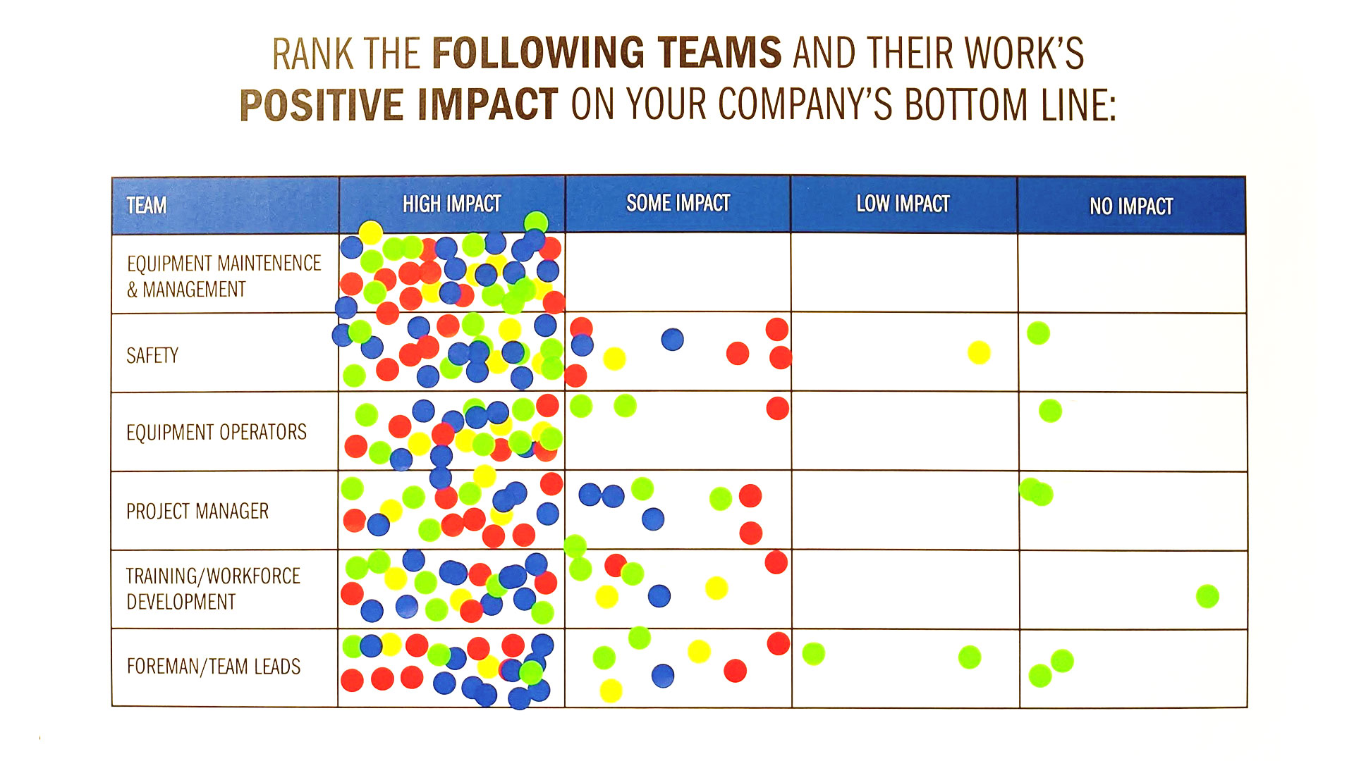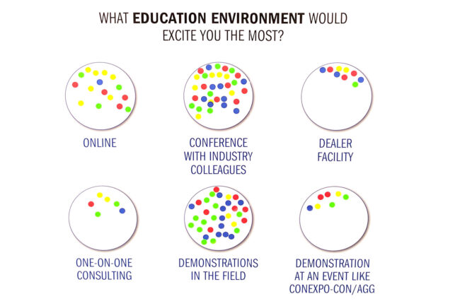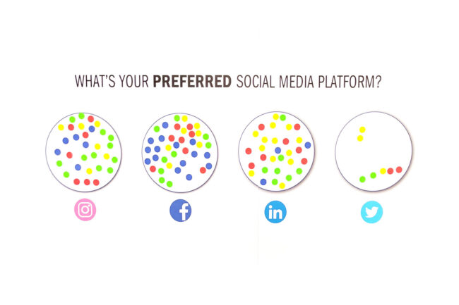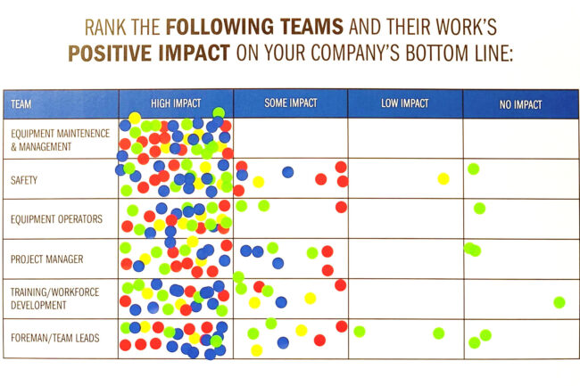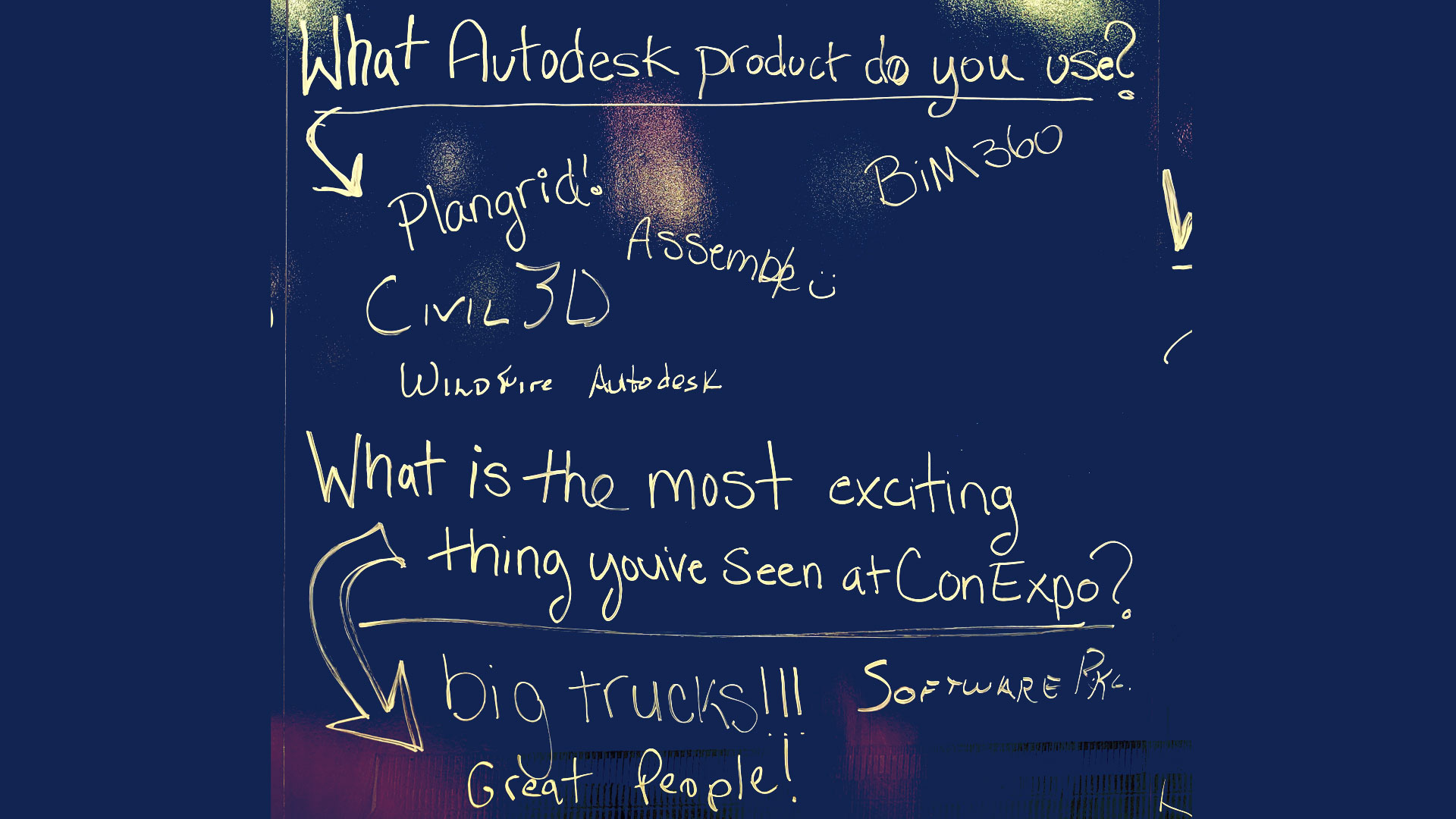 One of the cool things we did at our booth began with either a sticker or paint pen. Our audience had a chance to write their responses to two questions (about product and profession) directly on the board. And the other, involved taking a sticker and placing it in sections that related to their company. Combined with both, we not only learned about the pains/issues in their world on the floor, but highlighted them on social media BTS to also garner engagement.